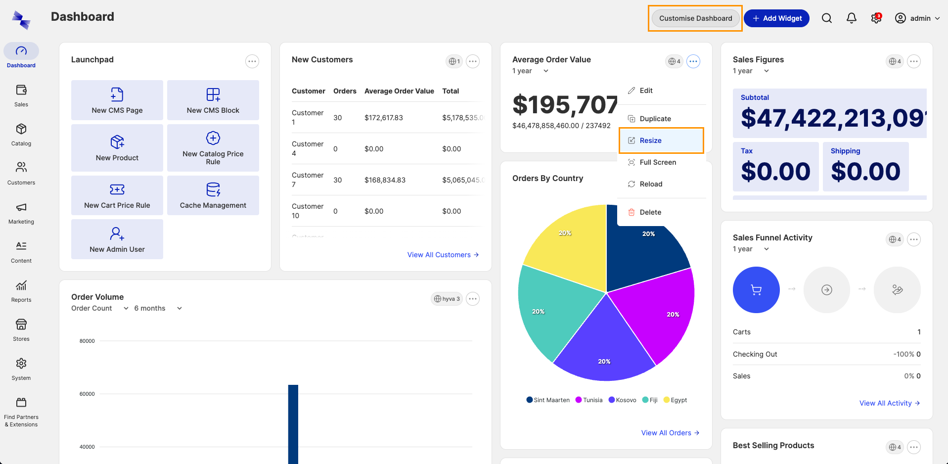 customize Dashboardbutton in the upper right corner of the dashboard. - Selecting the